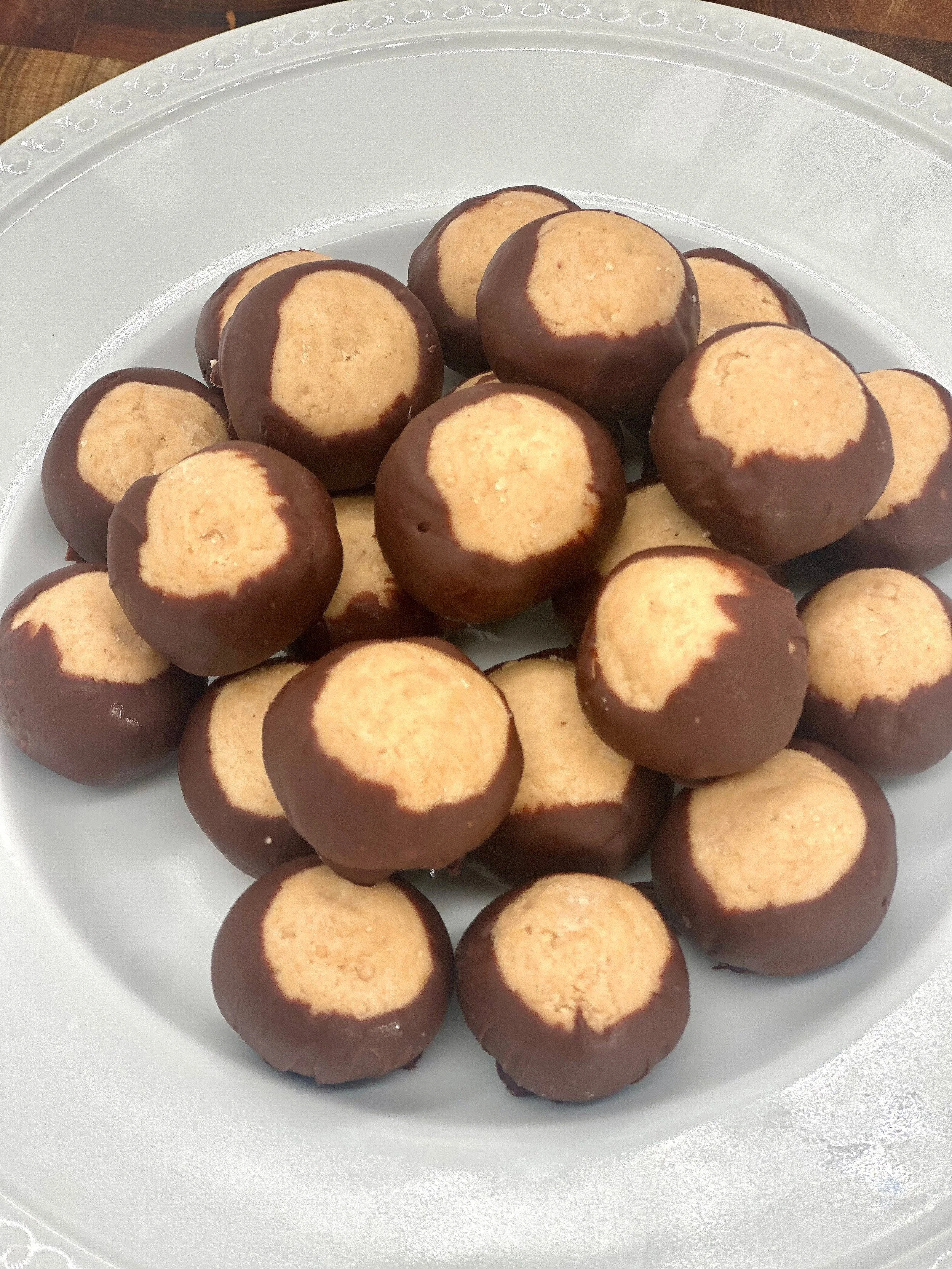 A classic Midwestern treat, our traditional Buckeye features a rich, creamy peanut butter center dipped in smooth, semi-sweet chocolate—leaving just a peek of golden peanut butter on top.